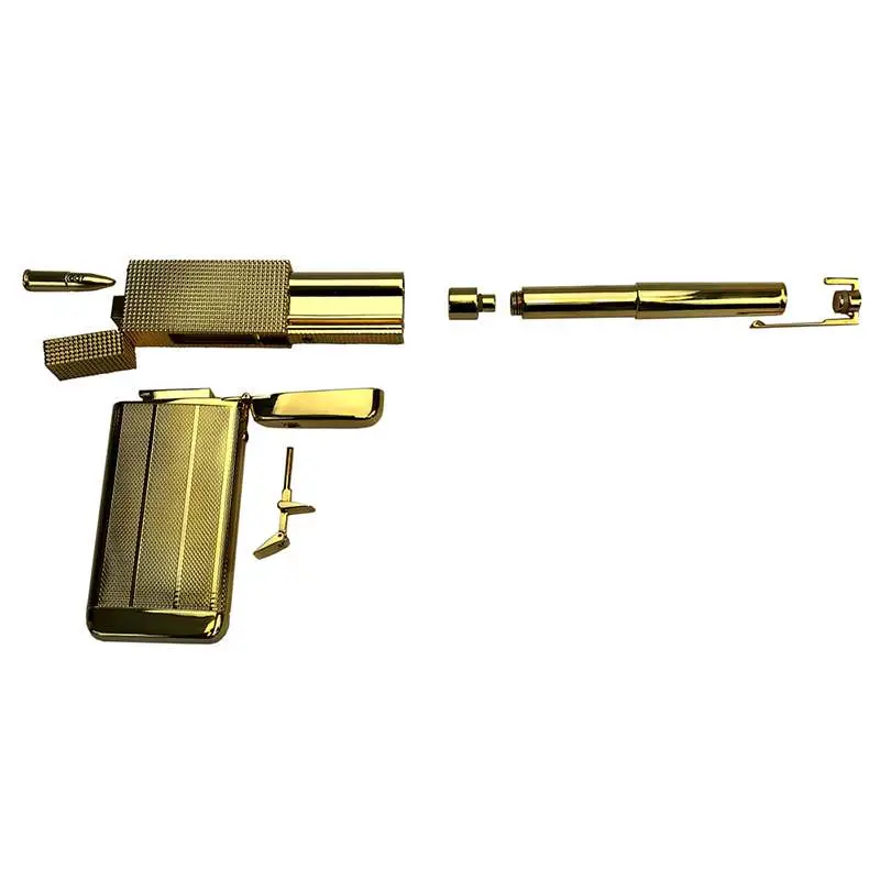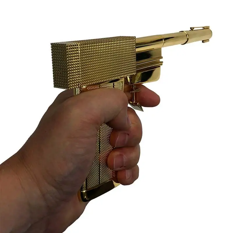 From the 1974 film The Man With the Golden Gun, the Golden Gun is the signature weapon of assassin Francisco Scaramanga. Scaramanga’s Golden Gun was made up of seemingly innocuous separate elements that when combined created a deadly single shot handgun, a weapon that was not quite deadly enough to best 007. The Golden Gun is certainly one of the most iconic weapons of the James Bond series, and perhaps one of the most widely recognized cinematic weapons of all time.