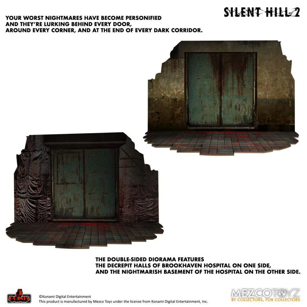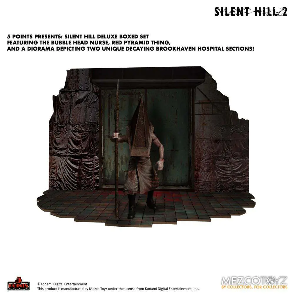 5 Points presents: Silent Hill Deluxe Boxed Set featuring the Bubble Head Nurse, Red Pyramid Thing, and a diorama depicting two unique decaying Brookhaven Hospital sections!