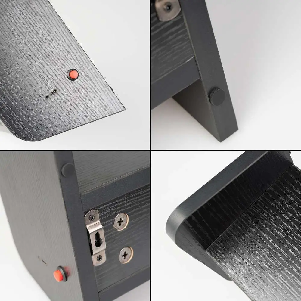 This lamp is inspired by the tops of arcade machines. It's made of MDF and acryl. It includes a lighting mode with a single control button located on the side of the lamp. It has two anchors on the back for easy hanging, and the side walls are slightly raised to serve as a shelf. It works with a USB Type-C cable - 5V DC 1A input (included) and also has an internal rechargeable 2000 mAh 3.7V lithium-ion battery with a battery life of 6 hours and a maximum charging time of 3 hours and 30 minutes. Includes two wall plugs and two screws for installation. Dimensions: 34 x 22.5 x 14 cm.