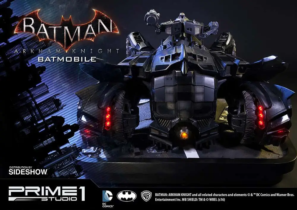 Sideshow and Prime 1 Studio are proud to present the Batmobile from Batman: Arkham Knight. Designed by Batman, the Batmobile is a highly detailed vehicle that exceeds capabilities of any other on the road. Armored and outfitted with enhanced recon capabilities and weapons, this tank-like custom car is Batman’s main mode of transportation around Gotham City. This 1:10 scale polystone diorama features an LED light-up function.