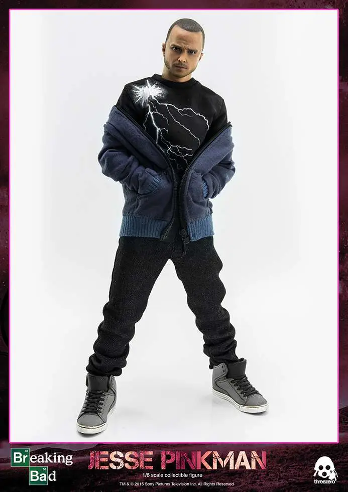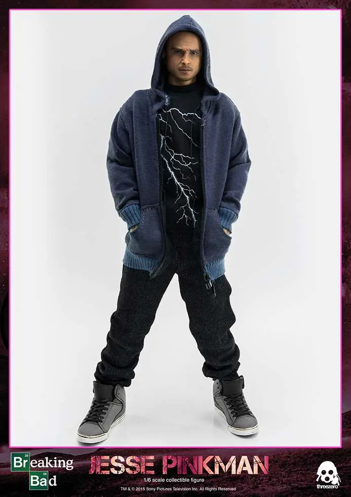Threezero is excited to present the second collectible figure from Threezero's Breaking Bad series based on the smash hit television show. The Jesse articulated figure stands approximately 12" tall and features tailored clothing, various accessories and a realistic likeness to the on-screen character.