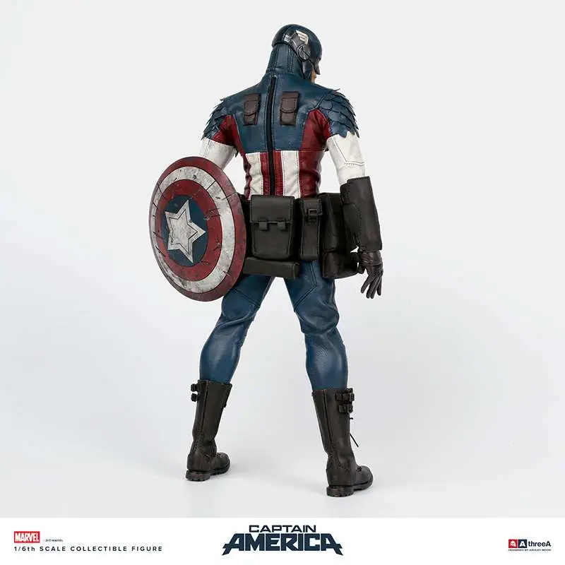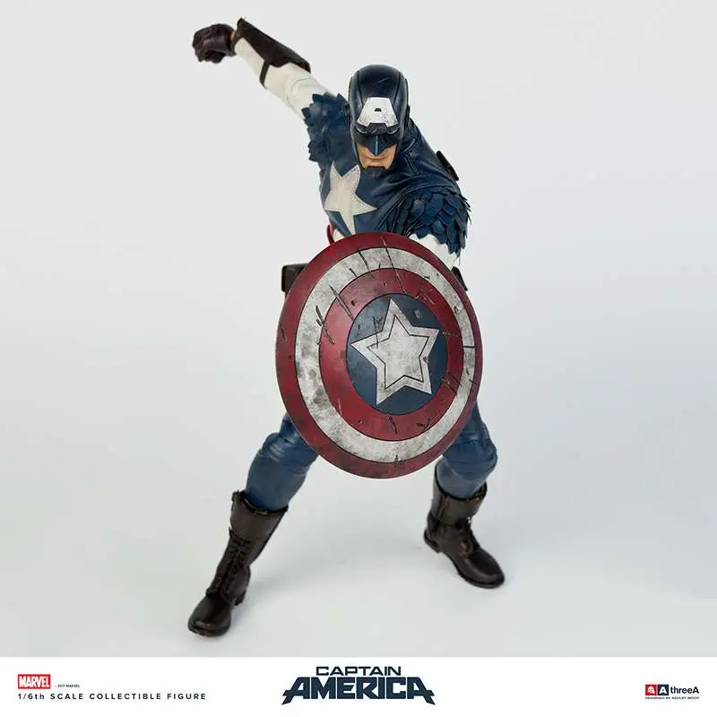 ThreeA and Marvel proudly present the sixth character in their stylized Marvel 1/6th Scale Collectible Figure Series – Captain America! Ashley Wood and ThreeA take the Sentinel of Liberty into the modern world blending elements of his unmistakable historic comic book outfit with contemporary tactical fatigues – all deftly tailored including the classic layered scallop detailings .Captain America comes complete with his iconic Shield which features magnetic detailing that grant the ability to store on Cap’s back and on his faux-leather arm bracers. Captain America debuts a newly enhanced, heroically proportioned 1/6th scale body!
