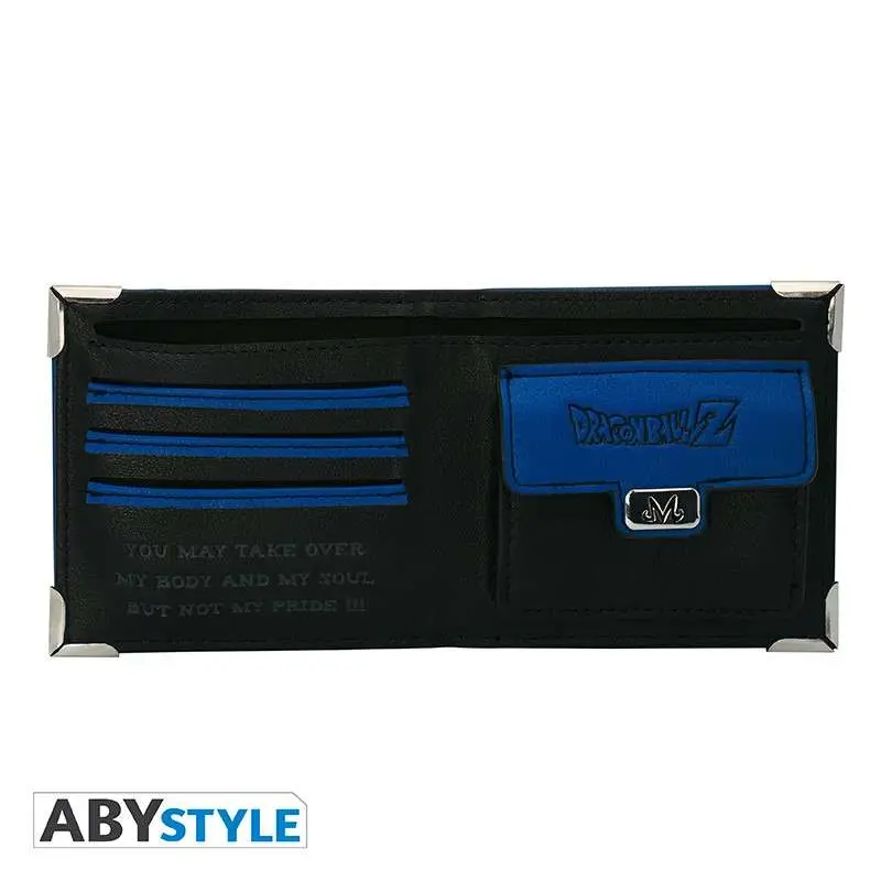- An exceptional finish: metal Majin emblem on the front, metal parts at the corners of the wallet, embossed Majin Vegeta character on the back, embossed with the Dragon Ball logo inside the wallet, inside pocket with metal closure button decorated with Majin emblem, famous Vegeta quote embossed inside, ...
