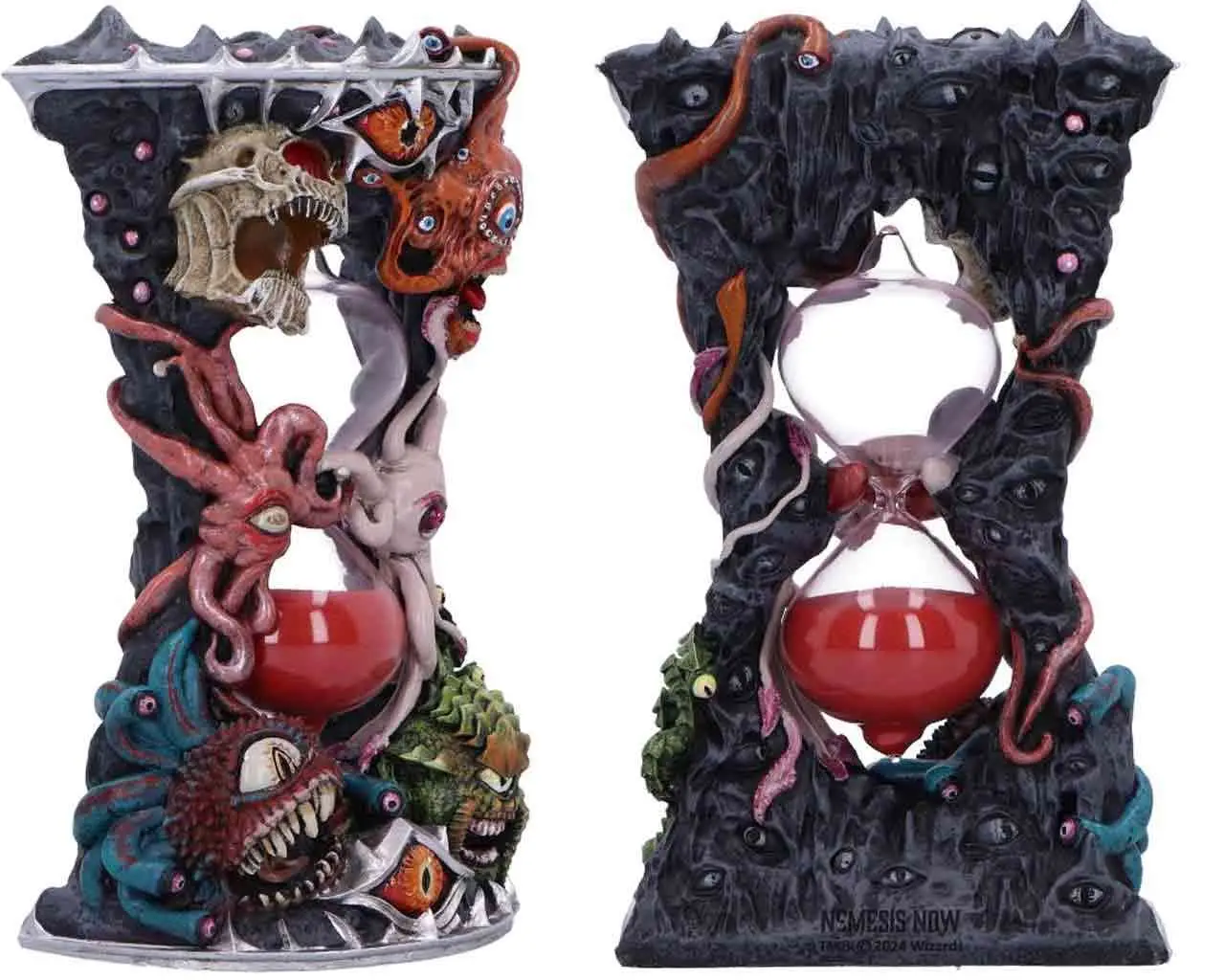 Get ready for adventure with this hourglass dedicated to the Beholder of Dungeons & Dragons, an irresistible accessory for any fan of the popular role-playing game. This hourglass features a dynamic design sculpted from high-quality resin and painted entirely by hand in vibrant, eye-catching colours. In the centre, a glass container filled with vibrant red sand marks the game's time. Perfect for fans of Dungeons & Dragons and other board games, this unique piece is packaged in an eco-friendly, 100% recyclable, Dungeons & Dragons branded gift box, making it an ideal gift for fellow adventurers.