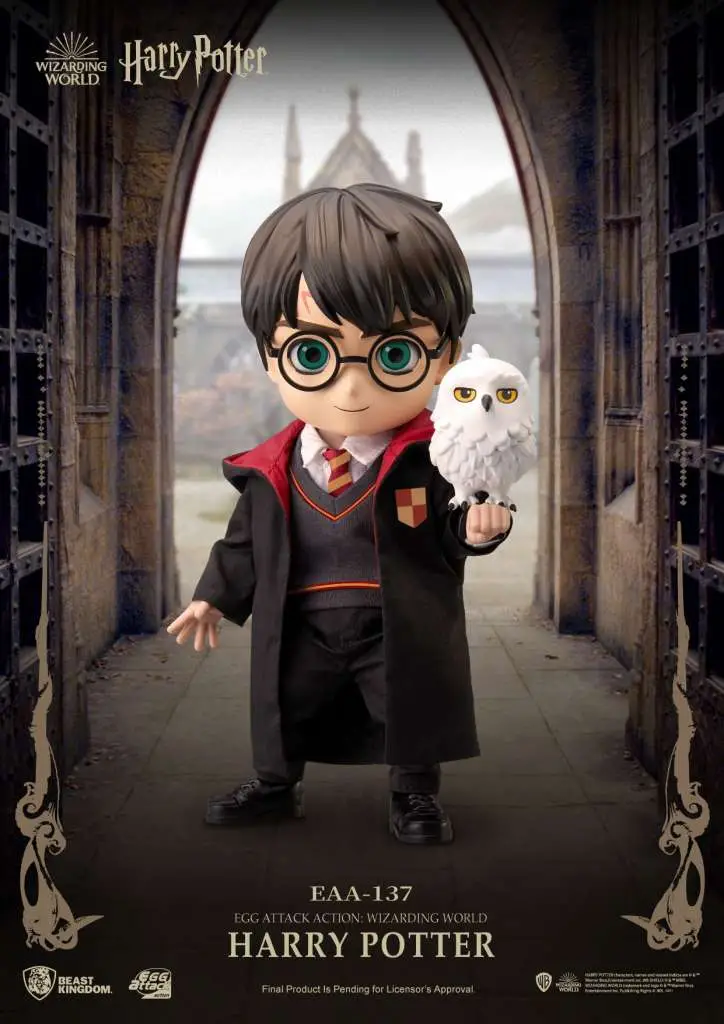 The ‘Egg Attack Action’ series of stylized action figures from Beast Kingdom’s ‘Entertainment Experience Brand’ has become a household name. The launch of the Harry Potter EAA series takes the figures to the next level with a new 4 inch 'Chibi' style design. Featuring 16 points of articulation, this new, cuter design perfectly fits with the wonderfully magical world of the series. Harry’s robe and suit are extremely detailed with the use of real fabric down to the tie itself. Additional accessories include a pair of wizard wands, a magical broomstick, a sorting hat, and the inclusion of Hedwig the Owl himself. A variety of replaceable hands are also accompanied with two replaceable faces, really allowing collectors to pose Harry as they see fit.