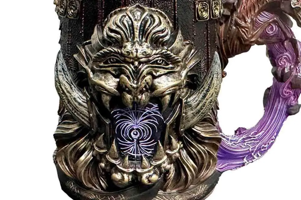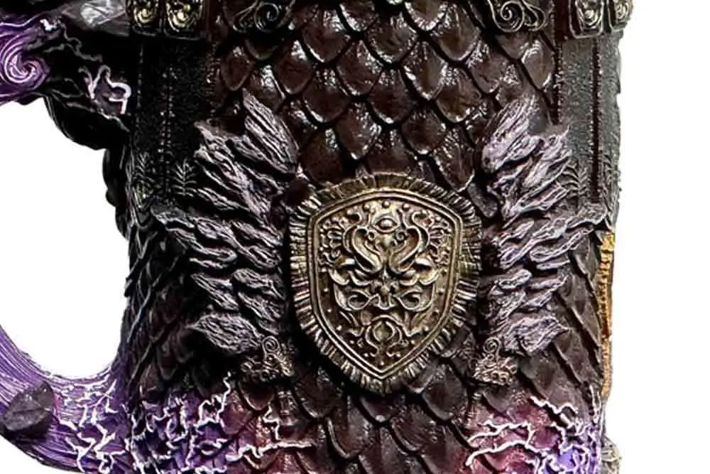 Amazing hand-painted resin collectible tankard. It measures 16 cm and has got a stainless steel cup inserted. It comes in a gift box.