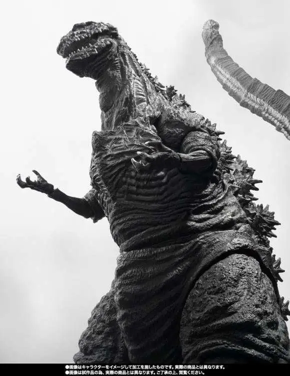 From the Shin Godzilla film comes the S.H.MonsterArts Godzilla 4th Form (Orthochromatic Ver.) action figure by Bandai! this figure was sculpted and colored by the designer Takayuki Takeya to represent this black and white film's representation of Godzilla, based on the 3D data from the movie.