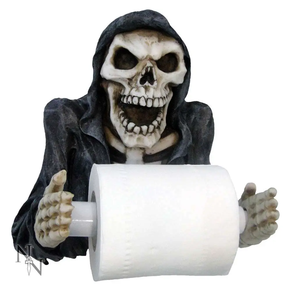 Toilet paper roll holder. Cast in high-quality resin and painstakingly hand-painted. Keyhole hook on reverse for hanging.