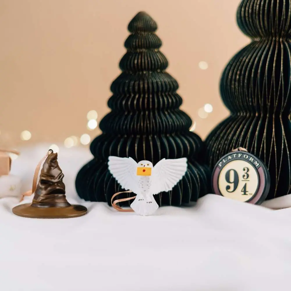 Set of three Christmas decorations made of resin, molded in relief and painted by hand. They come with a satin ribbon for easy hanging on the Christmas tree. Dimensions: approximately 7 x 7 cm.