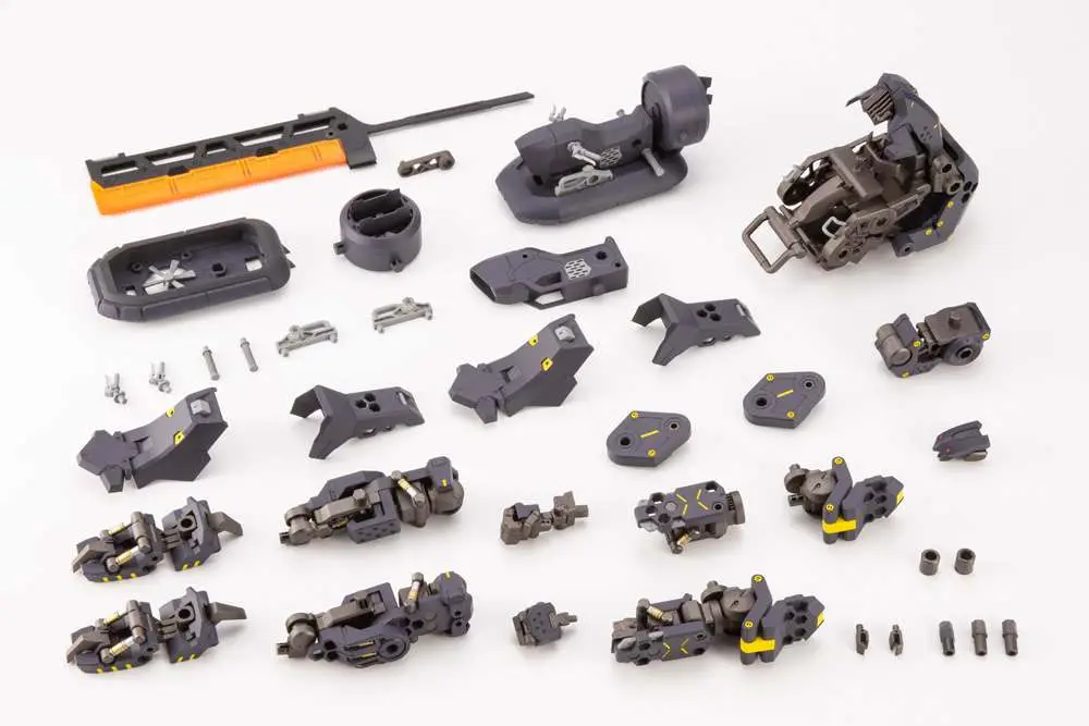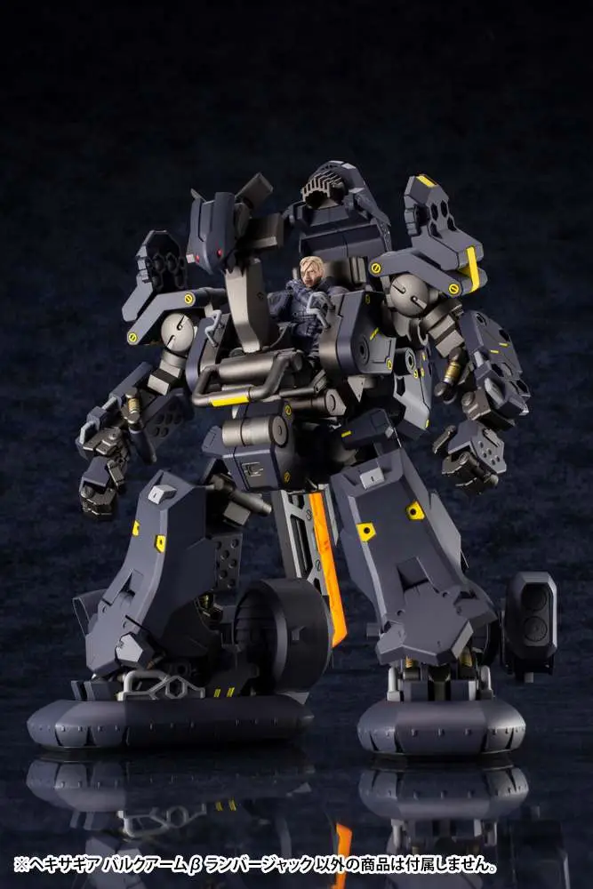 The model’s design is extremely similar to the Alpha unit, and the primary visual difference is the legs. The Beta unit was outfitted with support devices on the legs for mobility purposes, giving the unit a comparatively high movement speed. The reason for this improvement is the slow movement speed of the Alpha unit, which was sacrificed at the cost of the unit’s durable but extremely heavy armor. Like the Alpha unit, the Beta unit features the Iron Fist operators that favor strength, but the flexibility of the wrist joints has been improved, allowing the operators to be equipped with a wider range of weapons. This feature allows the model to be customized with a variety of weapons, from long-range cannons to close-combat gear, but most customizations utilize smaller weapons such as machine guns and knives in order to avoid hindering the unit’s improved mobility.