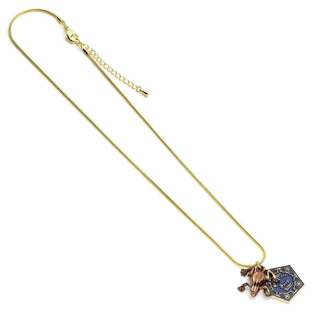 Official Harry Potter Chocolate Frog Necklace Chocolate Frog design on a gold plated snake chain The Chocolate Frog was the magical confectionary, first seen in Harry Potter and The Philosophers Stone that came packaged with enchanted collectible cards featuring famous Witches and Wizards.