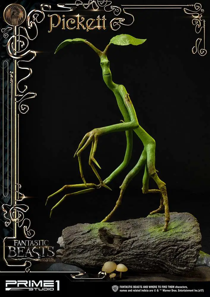 Prime 1 Studio is proud to present Pickett from Fantastic Beasts and Where to Find Them (Film). Pickett was a Bowtruckle that was kept by Newt Scamander as a pet. Although he had at least six Bowtruckles (Pickett, Titus, Finn, Poppy, Marlow, and Tom), Newt was especially fond of Pickett, and even carried him around in his top pocket, first because Pickett had a cold and needed body warmth, and also because Pickett had attachment issues.