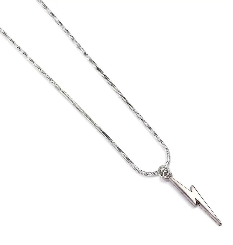 Lightning Bolt Charm on a silver plated Necklace - The charm is approx 15mm in height - The Necklace is a silver plated snake chain which is 16 inches in length with a 2.5 inch extender chain - This necklace comes on the official Harry Potter branded card packaging and shows the Warner Bros logo on the reverse