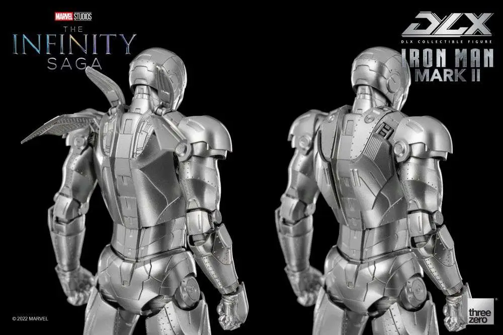 threezero and Marvel Studios are pleased to present the DLX Iron Man Mark 2 as the next figure in the Marvel DLX series. This suit was constructed as a prototype, and the first Iron Man Armor built at Stark Industries. It is characterized by its metallic silver color scheme, applied here with a multi-layer metallic coating process to accurately replicate the design of Tony Stark’s armored suit as seen in the Iron Man movies.
