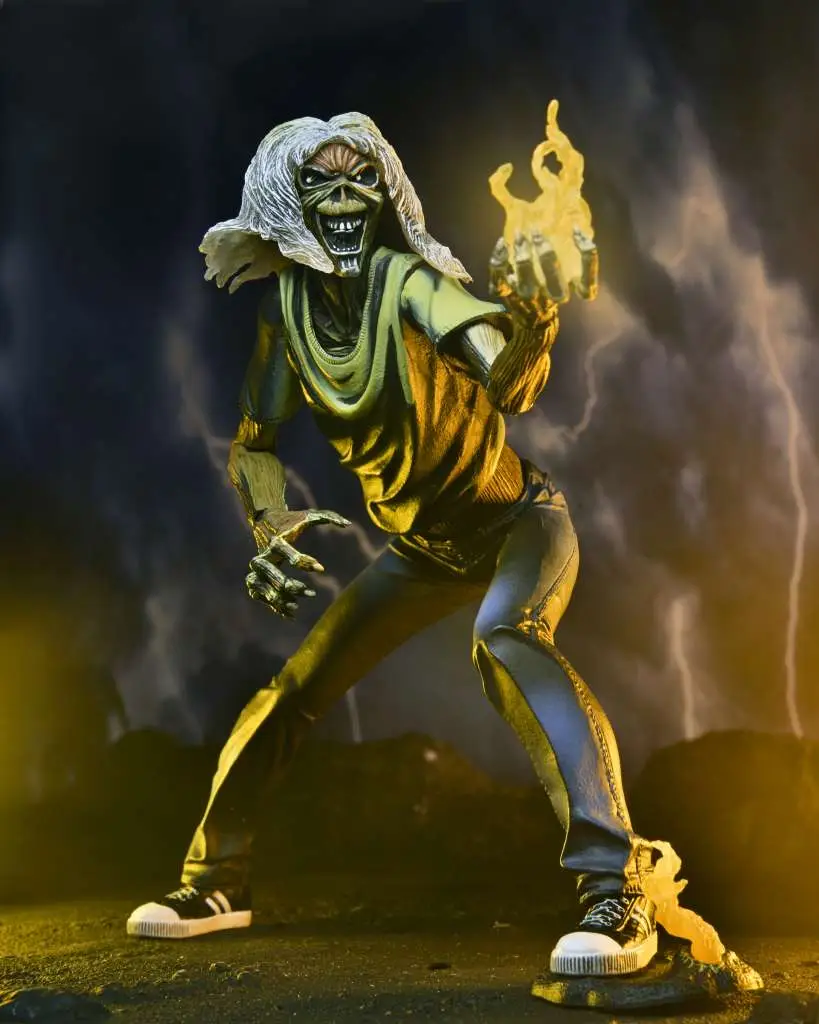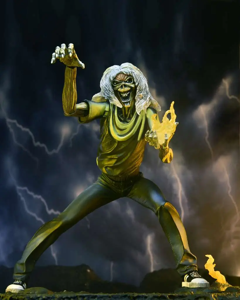 It's Eddie, Iron Maiden's legendary mascot, as he appears on The Number of the Beast album and single covers! Celebrate the 40th anniversary of this metal masterpiece with this 7" scale figure set that lets you recreate Derek Riggs' art for both the iconic 1982 album and title track single. Eddie features stunning detail in paint and sculpt that really recreates the illustrations, and is puppeteering the devil himself, who has his own even smaller Eddie puppet. The set also includes a Satan’s head accessory to recreate the cover art for “The Number of the Beast” single cover. Comes in special 40th anniversary 5-panel packaging with opening front flap.
