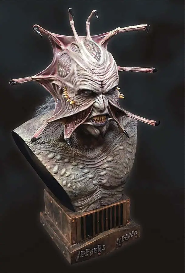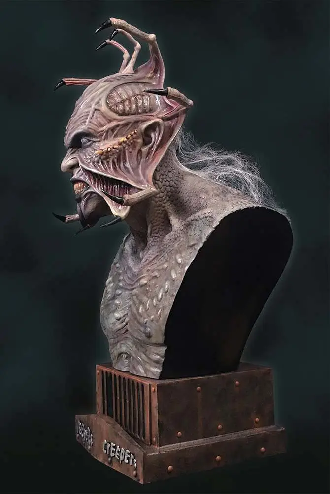 This amazingly lifelike bust is based on The Creeper as he appeared in the original cult horror movie Jeepers Creepers, and features synthetic hair for added realism. Standing an imposing 30” tall, it comes complete with a themed display base, evoking elements of The Creeper's truck.