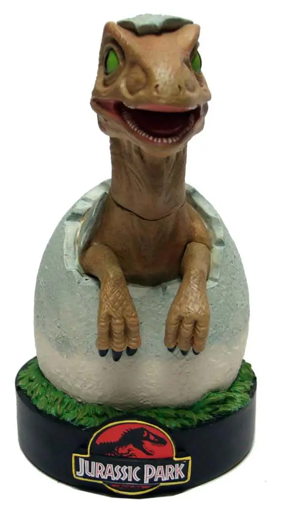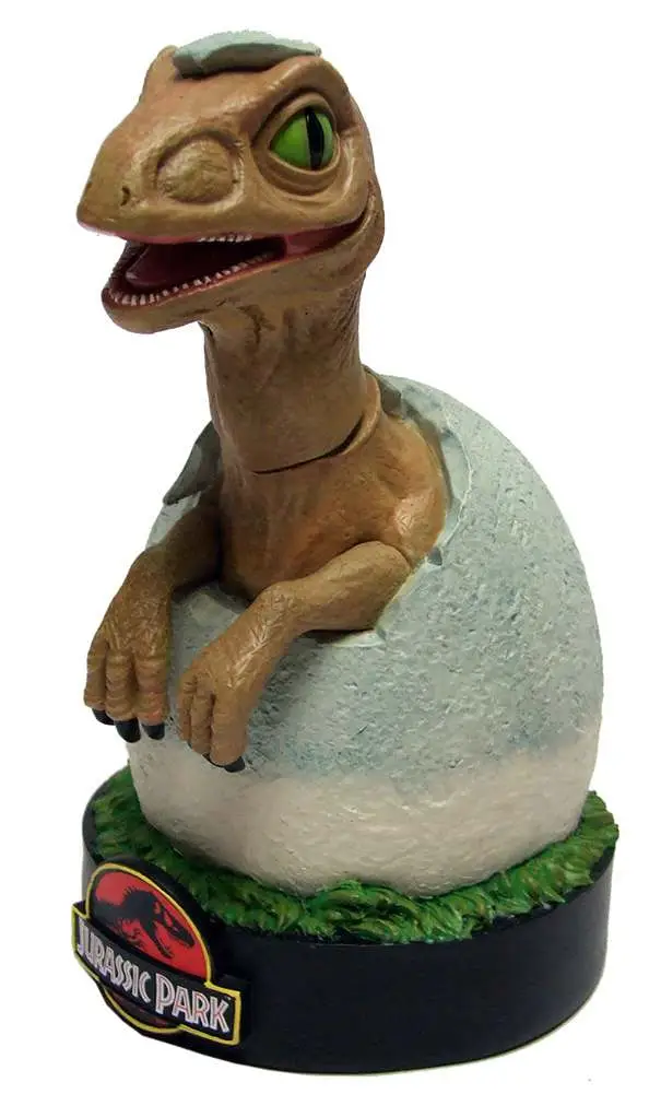 Factory Entertainment is proud to present the nasty raptor puppy from the "JURASSIC PARK" movie saga as a highly detailed polyresin collectible. Standing 7” tall it features a pleasing ‘wobbling’ motion to the head. Supplied in a full color branded box.