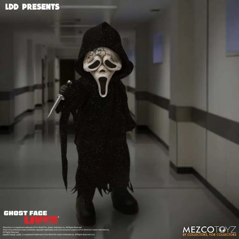 The LDD Presents Ghost Face - Zombie Edition stands 10” tall and features 5 points of articulation. He is packaged in a die-cut window box, perfect for display.