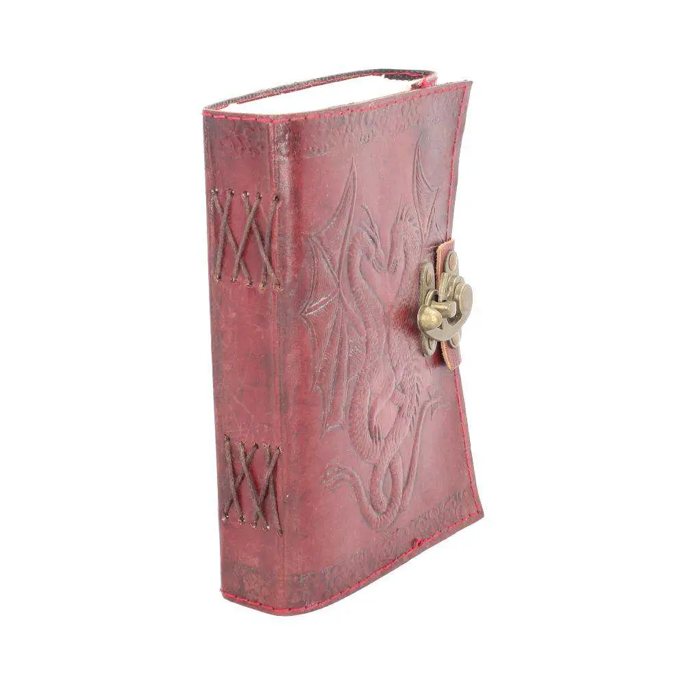 The cover is made of leather with details of various fantasy/goth themes engraved.