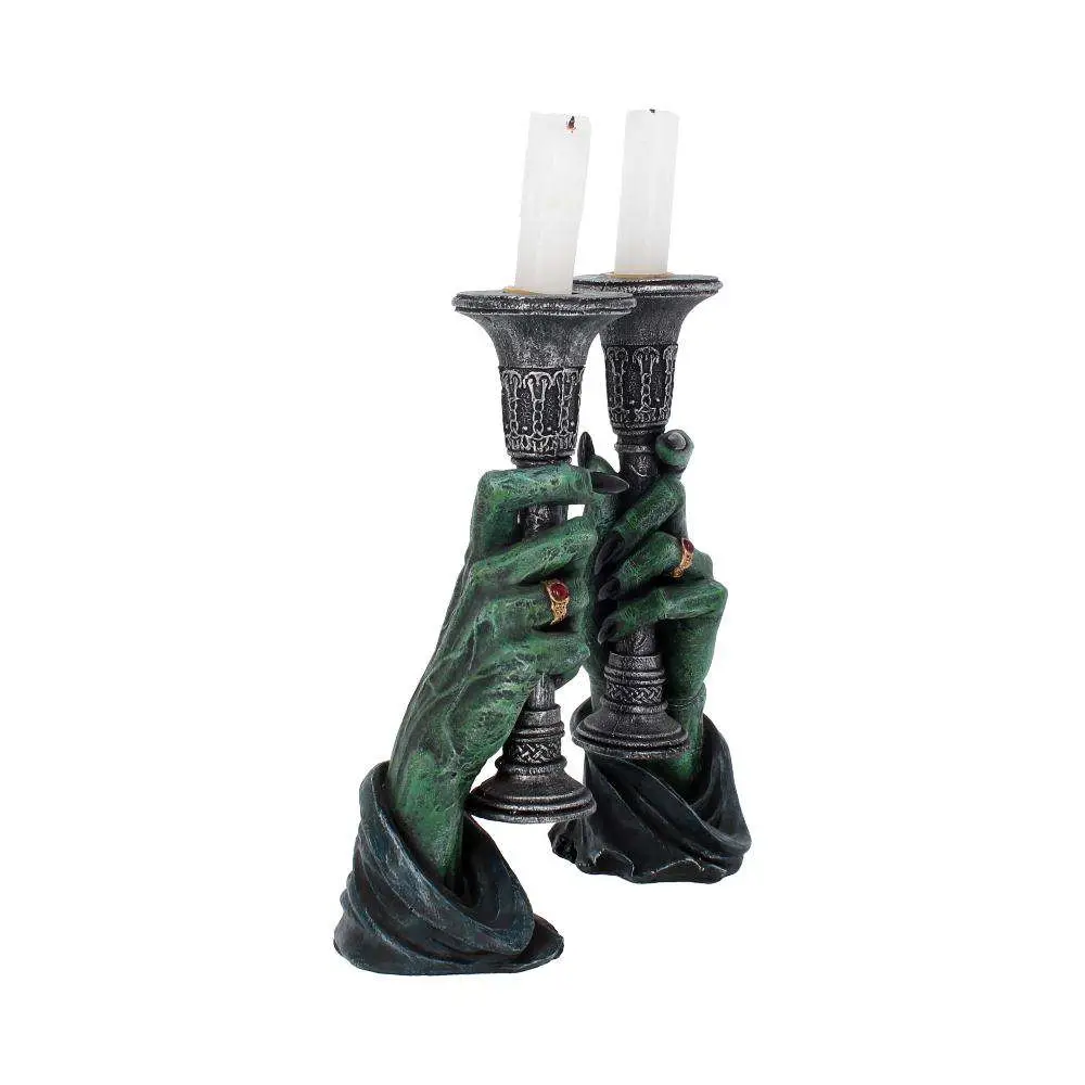 A pair of green hands rise up from your table, each carrying a Gothic Candle holder. Perfect for adding a little Gothic horror to any room, these candle holders would take pride of place on any mantlepiece or dining table. Cast in the finest resin before being painstakingly hand-painted.