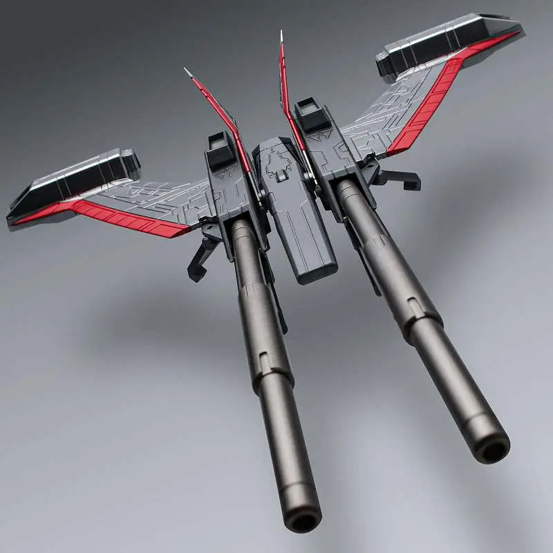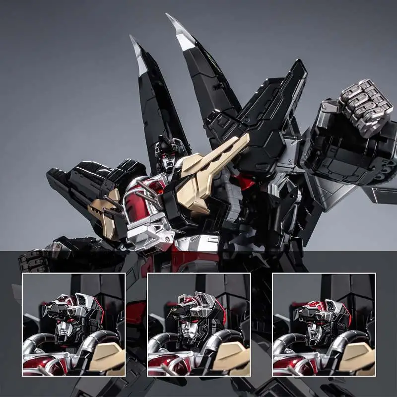 The spray paint of "DANCOUGA" has changed completely, now mainly formed by glossy black and metallic silver. Besides, canopies of each Jyusenki and the newly made Dankukogaken are made of clear parts. The new head (non-transformable) is specially redesigned by Mr. Obari and the enhanced wing seen in OVA is also included.