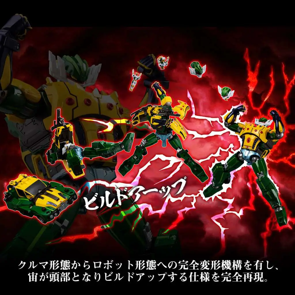 In addition to having a complete transformation mechanism that turns into a car mode, the gimmick which allows Hiroshi to change his form into Jeeg's head as in the original setting is also completely reproduced.