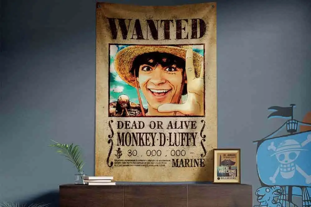 This officially licensed One Piece extra large wall banner measures 125 x 85cm and includes metal eyelets for easy hanging.
