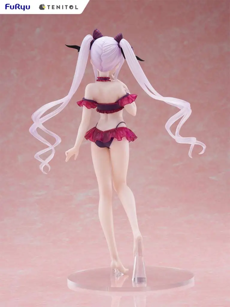 Clear parts are used for the swimsuit and hair. The transparent coloring is used to express her beautiful silver hair and white porcelain skin. Her breasts are sculpted with the well-known breast pads.