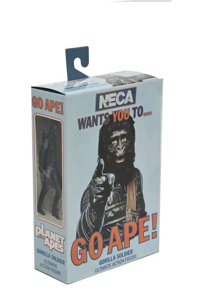 Build your Gorilla Army and defend against wild humans with this Planet of the Apes Ultimate action figure! The Gorilla Solider from the beloved 1968 film is getting NECA’s “Ultimate” treatment as a 7-inch scale action figure with an arsenal of accessories: three interchangeable heads, two batons, catching pole, rifle, belt, machine gun, removable backpack, and alternate hand. Comes in collector-friendly, Ultimate five-panel window box packaging.