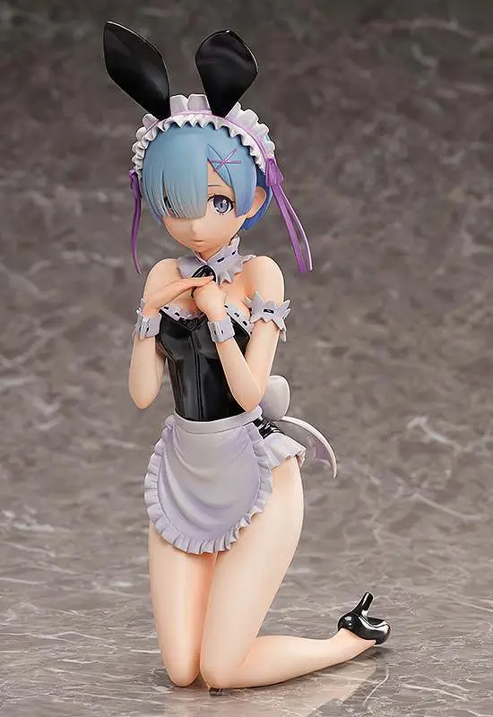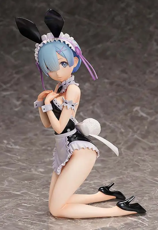 From the anime series "Re:ZERO -Starting Life in Another World-" comes a 1/4th scale bunny girl figure one of the younger of the twin maids at the Roswaal mansion, Rem! The bunny girl outfit she is wearing is based on her normal maid outfit, this time featuring bold bare legs.