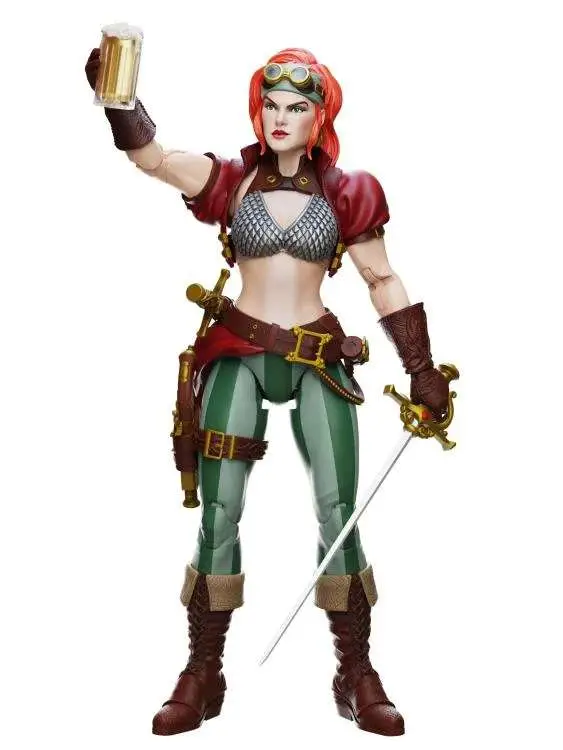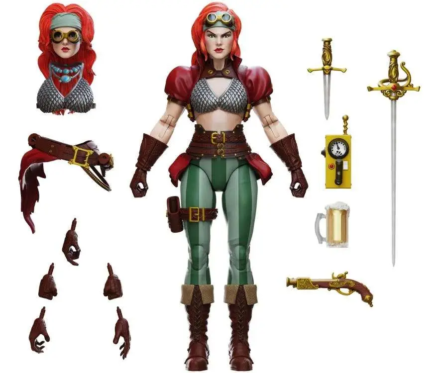Figure includes 2 Portraits, Rapier, Dagger, 2 Armored Tops, Swashbuckling Belt, Petticoat, Geiger Counter, Flintlock Pistol, Hip Holster, Stein, 3 Sets of Hands, and figure base.
