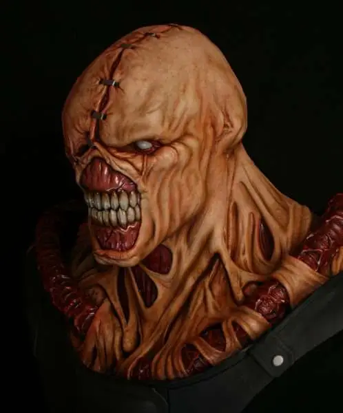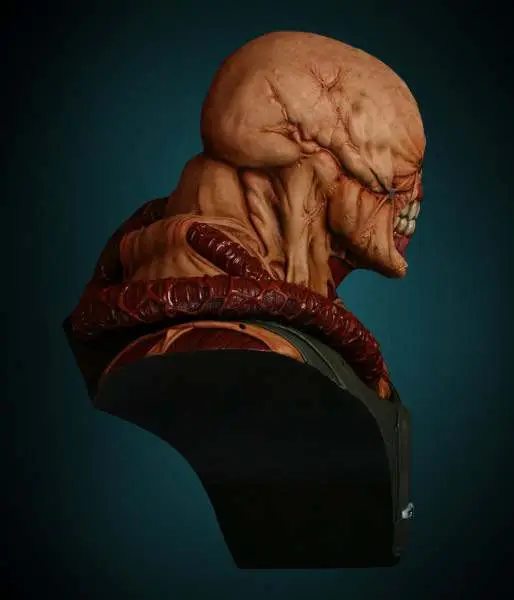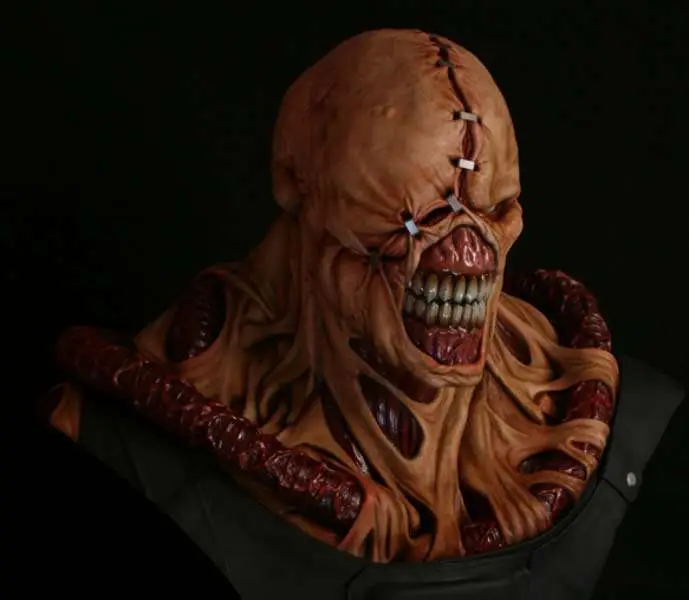 From the classic Resident Evil video games Hollywood Collectibles is very proud to announce the latest addition to the officially licensed collection.......a life size Nemesis bust! Standing a very imposing 28" tall and 26" in width, this amazingly intricate piece captures perfectly this most popular of Resident Evil monsters. This incredible piece of art is constructed from fiberglass and mixed media and then hand painted to the finest detail. This highly detailed bust is the definitive centerpiece for any Resident Evil collection! Limited to just 500 pieces worldwide!