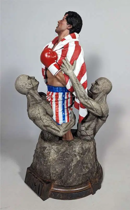 With an authentic likeness of Sylvester Stallone in character as Rocky, it is complimented by a “forged in battle” base!