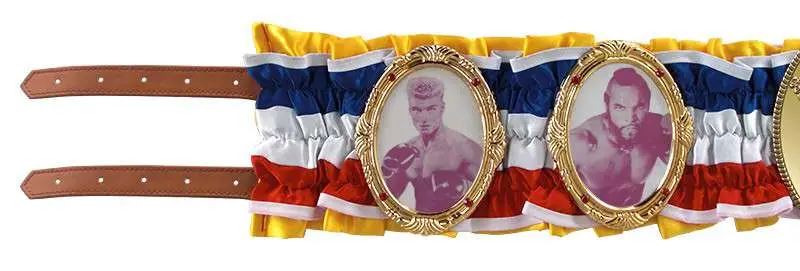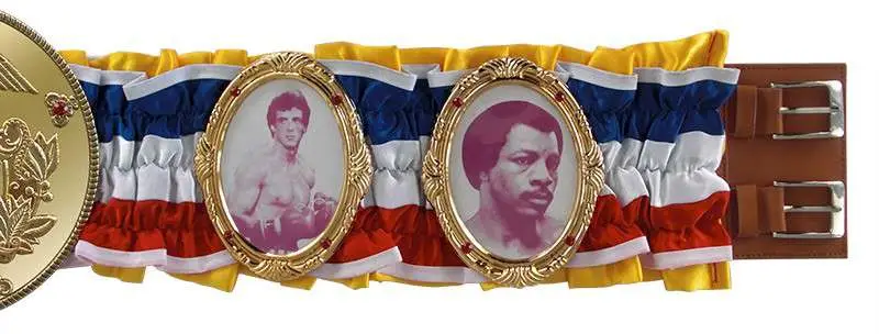 Hollywood Collectibles is proud to offer for the first time ever, a high quality officially licensed Limited Edition replica of Rocky's Championship Belt! Made from heavyweight cast metal with a high quality gold plated finish, genuine leather and layers of ruffled satin - just like the original! The four metal picture frames feature images of the various champions in Rocky movie history - Clubber Lang, Apollo Creed, Ivan Drago and of course Rocky Balboa.