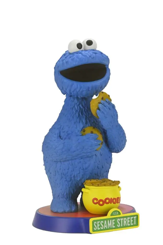Take a trip to Sesame Street with NECA! Celebrate your favorite cookie-loving, childhood friend with this Cookie Monster Head Knocker. Covered head to toe in blue fur, this hand-painted resin figure comes complete with an overflowing cookie jar, ready to share! This interactive collectible measures nearly 7 inches tall and features a spring mechanism that allows for head bobble movement. It’s a playful addition to your display and a must-have for fans of all ages! Comes in collectible matte packaging with spot gloss finish. Limited to 3000 pieces.