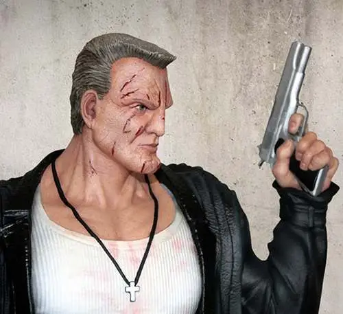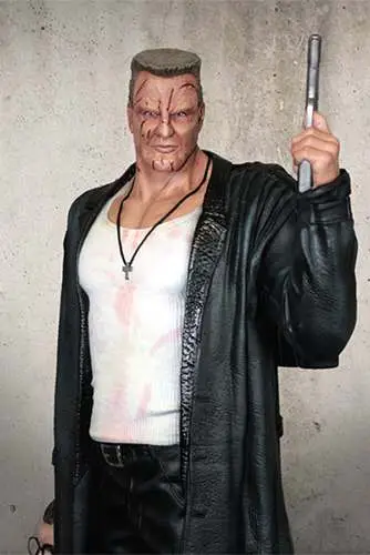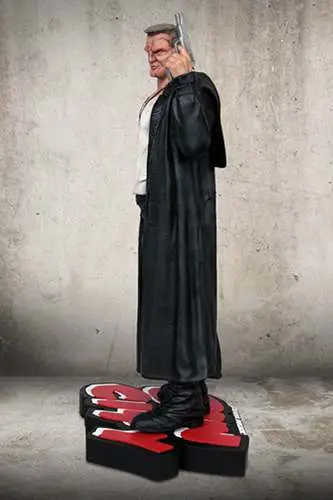 Brilliantly portrayed by Mickey Rourke in the movie, Marv is captured in classic pose with pistol in hand, bloodstained shirt and heavy trench coat.  With an authentic likeness of Marv, this incredibly realistic statue stands an imposing 20” tall on its Sin City themed base.