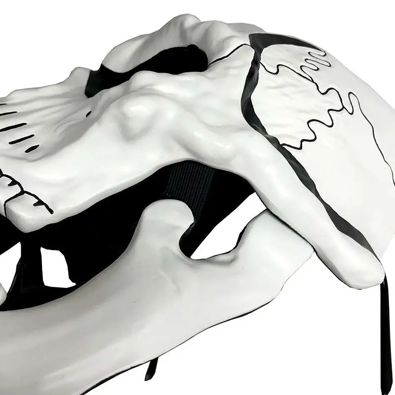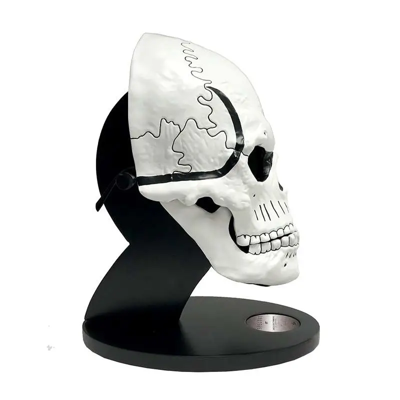 The original prop was constructed of a lightweight semi-flexible material, for comfort and the practical demands of a film set. Although visually identical to the original prop, the replica has been cast in heavyweight epoxy to create a more durable display item. The replica incorporates the same articulated jaw mechanism and eyeglass arms as the original prop. It also features a fully flock-lined interior.