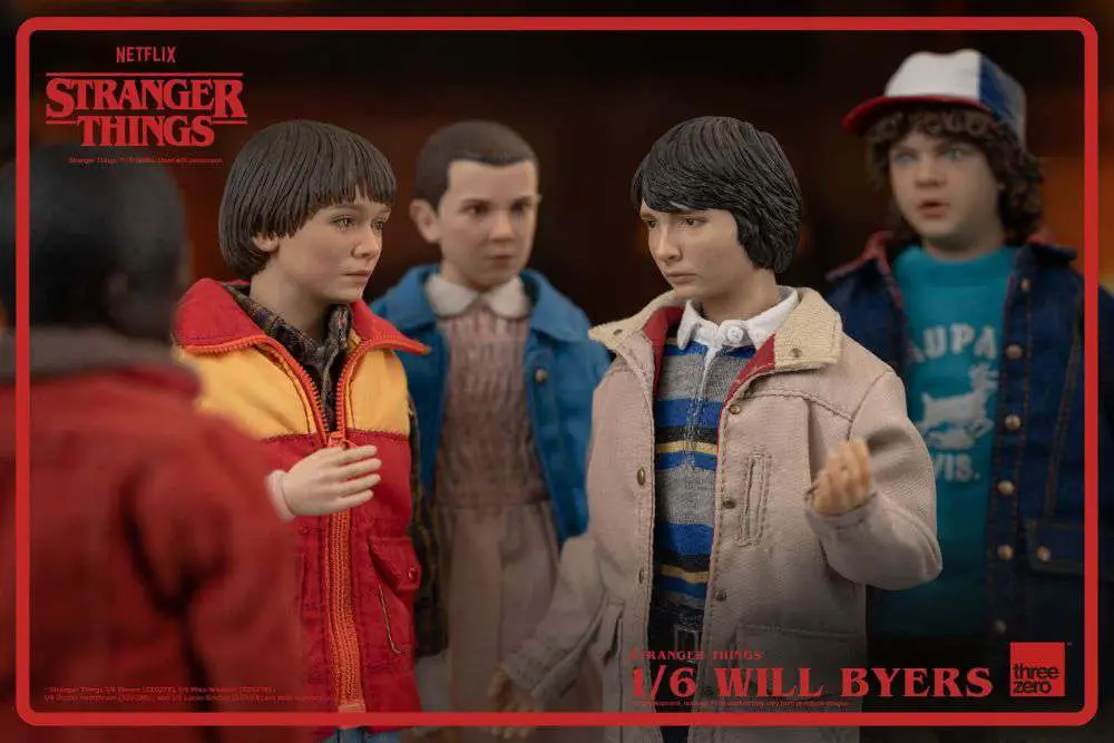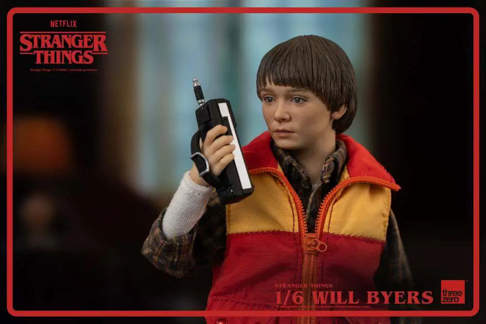 The Stranger Things – 1/6 Will Byers collectible figure stands approximately 9.6 inches (~24.5 cm) tall and features a fully-articulated original body with approximately 28 points of articulation and fabric clothing. The highly-detailed figure includes one head sculpt with an authentic likeness to the character’s appearance in the hit Netflix series Stranger Things. Accessories include a backpack, wristwatch, walkie-talkie, rifle, a pen, a Mind Flayer drawing, and five sets of interchangeable hands.
