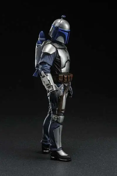 Kotobukiya proudly presents the newest release in their line of ARTFX+ statues inspired by the STAR WARS saga: Jango Fett. This highly detailed 1/10th scale sculpt features two interchangeable backpacks. Display Jango as he appeared on Kamino or during the battle of Geonosis! Features include interchangeable arm parts to allow for different posing optins, as well as magnets in the feet for extra stability on the included base.