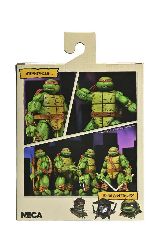 Based on the “Return to New York” storyline in Eastman & Laird’s Teenage Mutant Ninja Turtles comic books from Mirage Studios! These 7-inch scale action figures are fully articulated for great ninja poses. Michelangelo includes interchangeable hands, nunchucks, ninja stars, Mouser, kusarigama, space cuffs, and extra mask tie! Comes in special comic-book themed window box packaging with amazing artwork by Kevin Eastman.