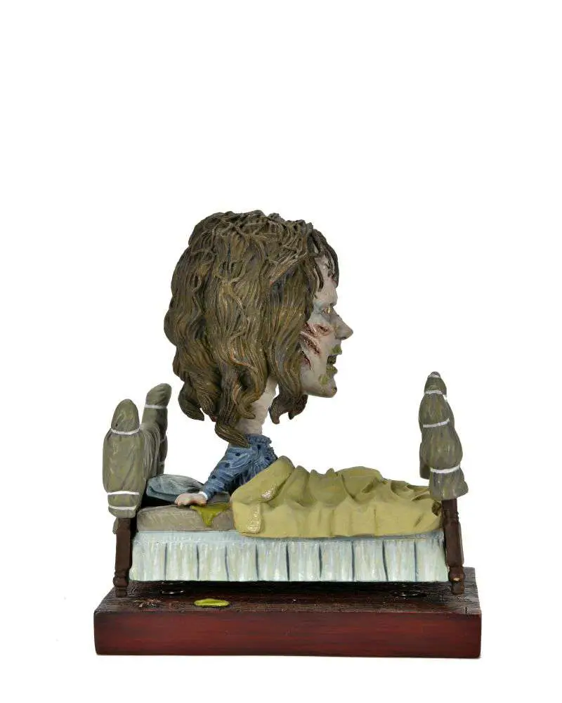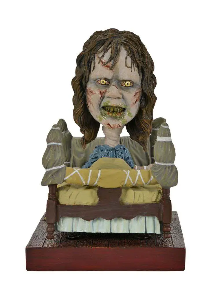 A cornerstone of the horror movie genre, The Exorcist has terrified generations of viewers. The 12-year-old Regan has been possessed by the devil, and only an exorcist can save her! This addition to our popular Head Knocker line brings you Regan, cast in resin and then hand painted for incredible detail. Stands 5.5 inches tall with bobbling bed and bobbling head, and comes in collectible matte packaging with spot gloss finish.