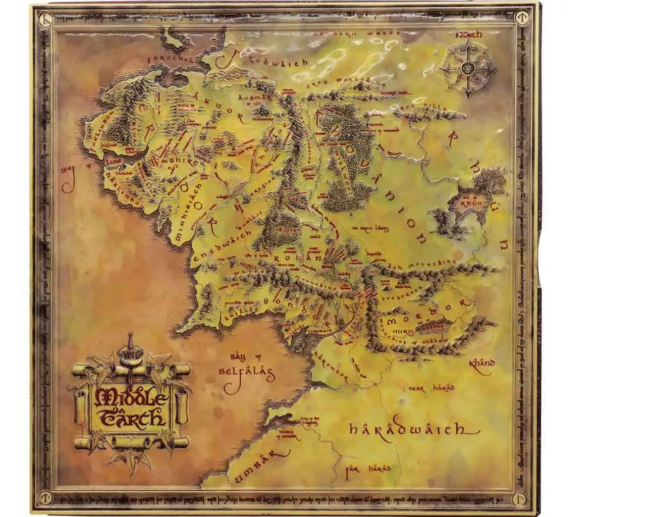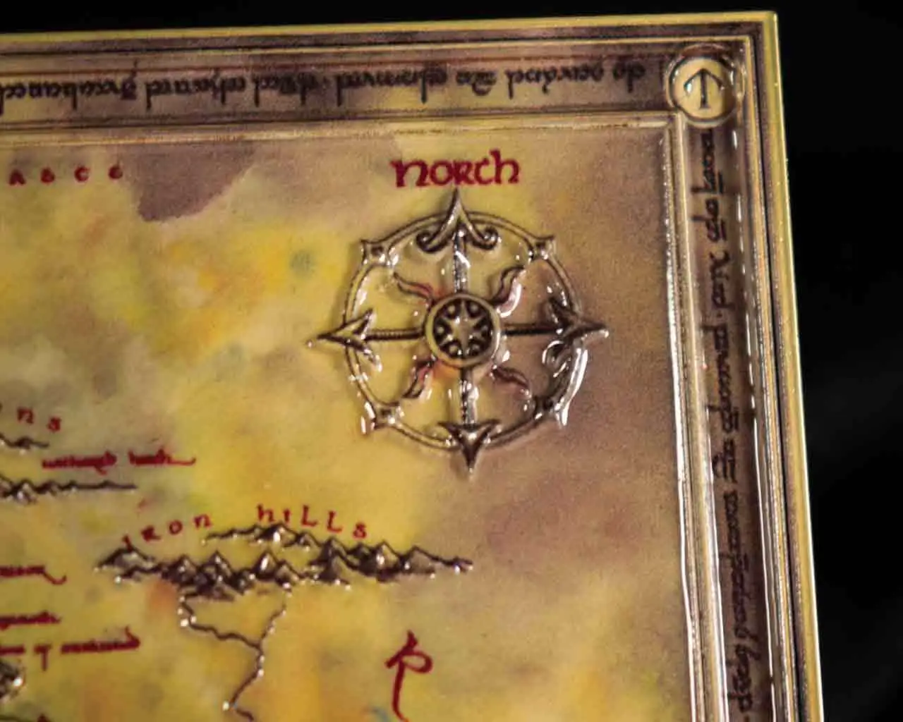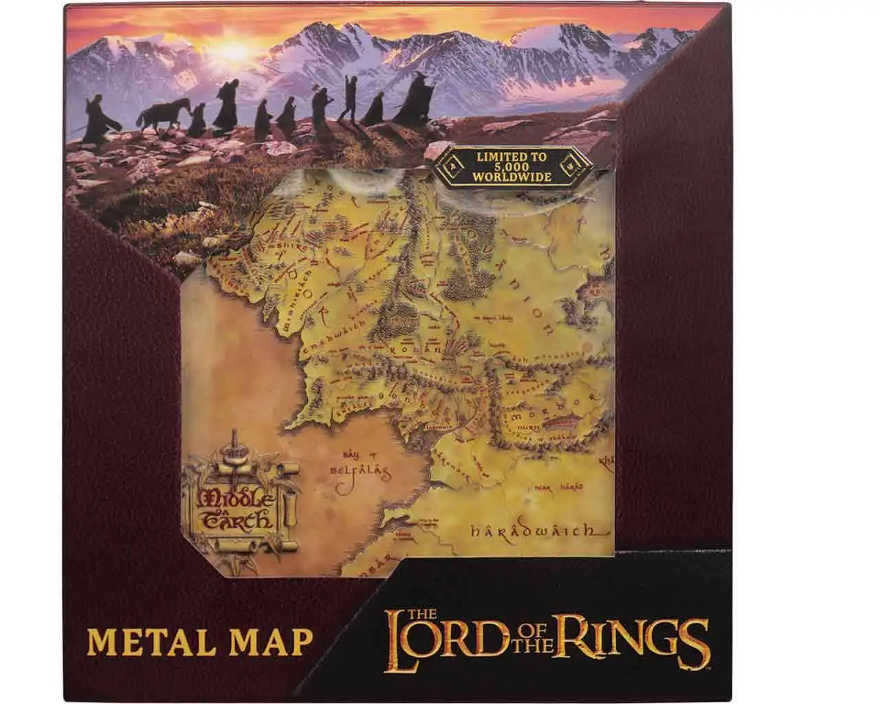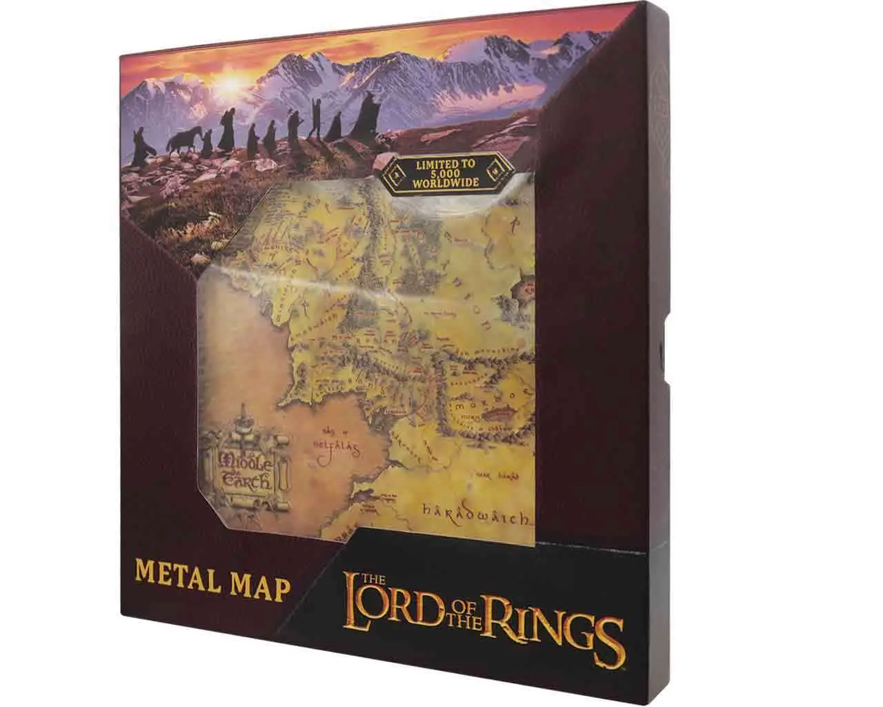 Follow the Fellowship and embark on an epic journey across Middle-earth! Measuring 15 x 15 cm, this heavily engraved metal map captures the lush pastures of the Shire and details the treacherous terrain of Mordor.