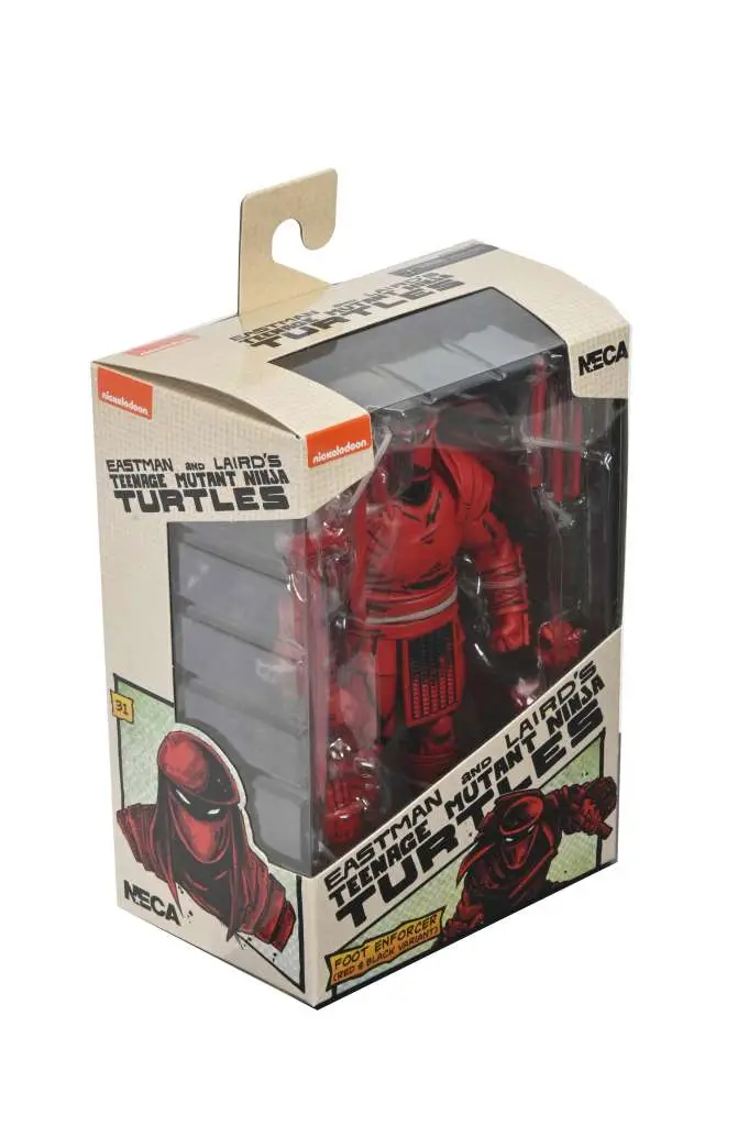 Based on the original Eastman & Laird Teenage Mutant Ninja Turtles comic books from Mirage Studios! The most skilled of the Foot Clan’s ninjas, the Enforcers are mysterious and menacing. These well-armed warriors form Shredder’s inner guard and carry out his most lethal orders. This Foot Enforcer action figure stands approximately 7" tall and features an exciting new red and black colorway. It includes a three-section staff, ninjato, butterfly sword, naginata and four sets of interchangeable hands. This NECA collectible comes in special comic-book themed window box packaging illustrated by Kevin Eastman and is a great companion piece to our Red and Black Foot Assassin! (Not included.)