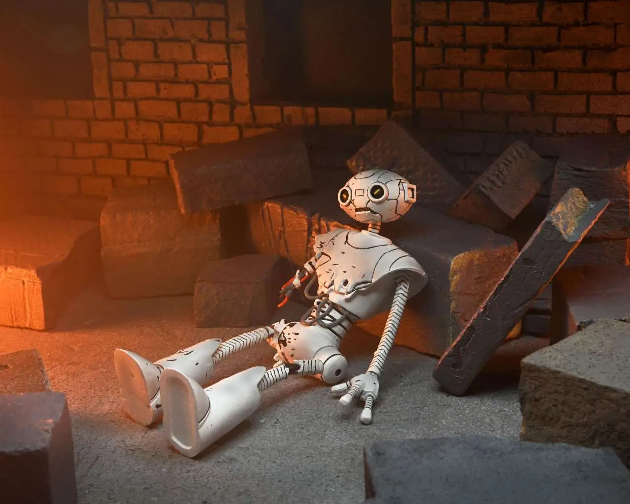 From the Teenage Mutant Ninja Turtles comic book series, The Last Ronin! In a future NYC far different than the one we know today, a lone surviving Turtle goes on a seemingly hopeless mission to obtain justice for his fallen family and friends. Add to your TMNT collection and build amazing scenes with this deluxe accessory set from NECA, featuring several scene-specific items and more from the best-selling comic book! There are endless world building possibilities with the Bleecker and Sullivan Street sign; plus, the security camera plugs into NECA's Street Scene Diorama (not included). This accessory set comes with a bandaged Ronin head that is interchangeable with previous Ronin action figures (not included), as well as a tactical vest for the SYNJA Patrol Bot figure (not included) and two new heads: SYNJA Officer and battle-damaged Patrol Bot. Other items include energy effects for the techno tonfa, translucent smoke cloud and three smoke bombs for the perfect ninja vanish, battle-damaged Fugitoid figure, Splinter's diary turned to the "No Peace" page, Hiroto hologram, weapons, and more! Comes in collector-friendly packaging with original art by The Last Ronin artist Ben Bishop.