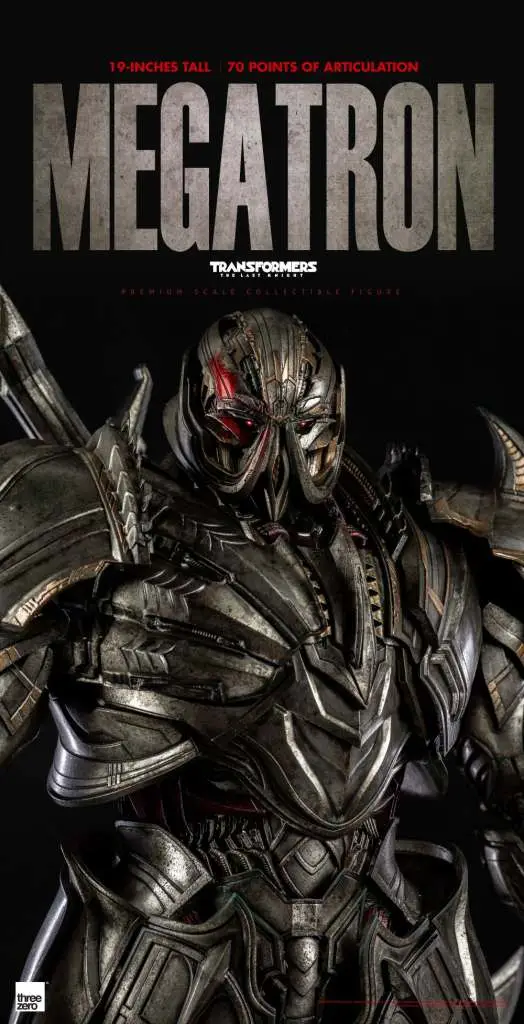 Hasbro and Threezero proudly present the PREMIUM Megatron (Deluxe Edition) Collectible Figure from Transformers: The Last Knight! Megatron has been meticulously adapted and engineered as a highly articulated collectible figure using the film model as a basis. The PREMIUM Megatron (Deluxe Edition) Figure features LED illuminated details, a variety of accessories, and incredibly detailed weathered paintwork.