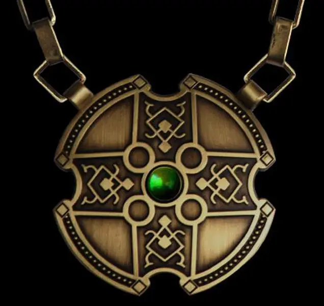 Hollywood Collectibles is pleased to offer the Officially Licensed Replica of perhaps the most important Prop from the Underworld movies – Lucian's Pendant. This beautifully crafted, Museum Quality Replica is made from heavyweight cast metal and is 2" (5 cm) in diameter with a green stone set in the center. The pendant is complete with a 22" (55 cm) square linked metal chain with authentic aged finish.