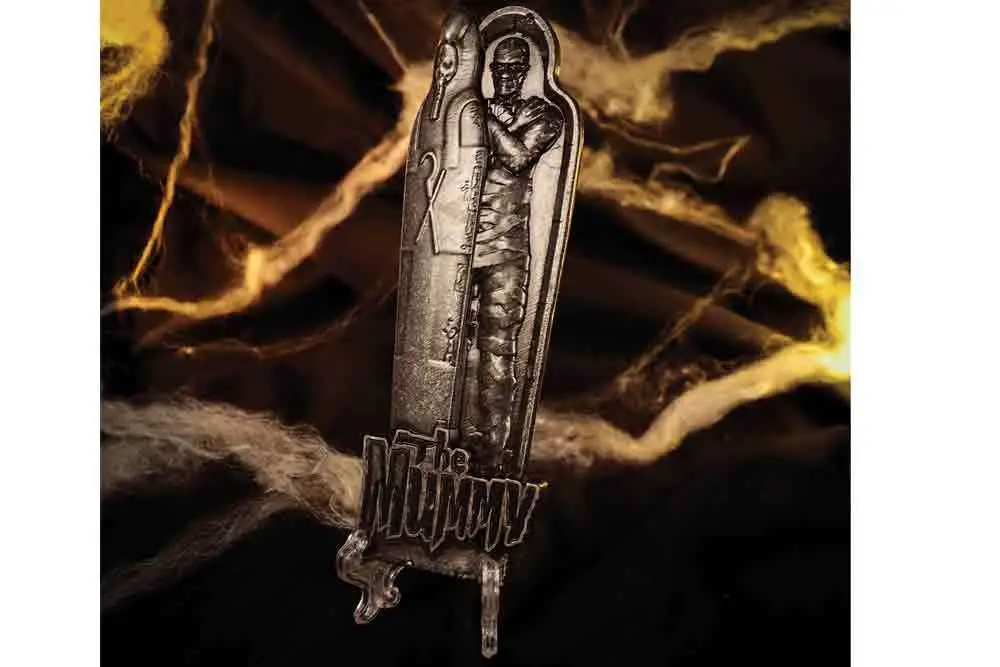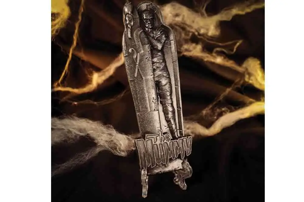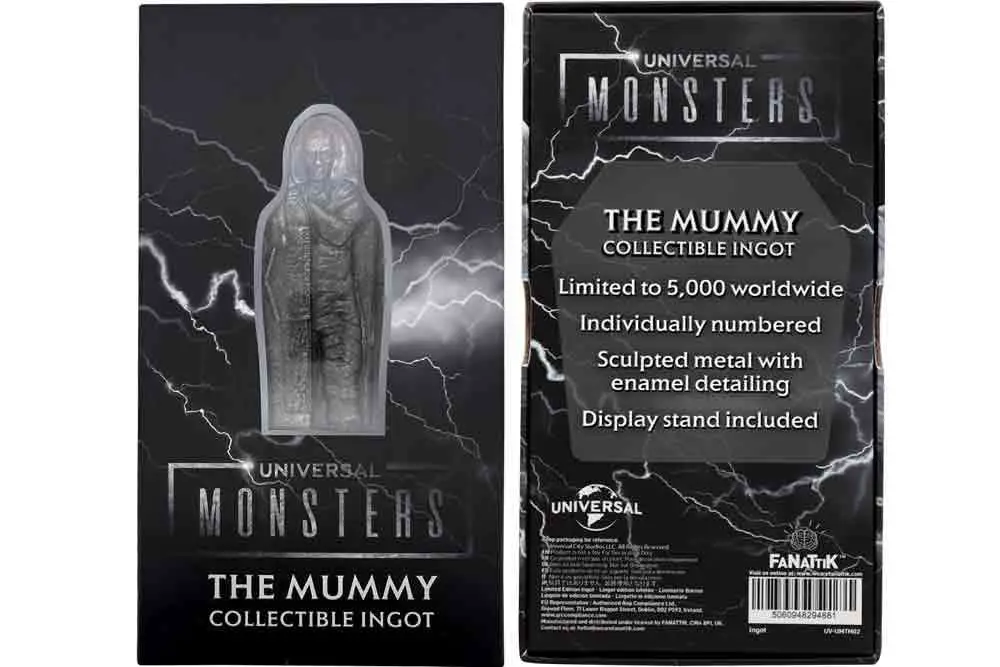 This limited edition metal ingot with coloured enamel celebrating Egypt’s own Universal Monster is individually numbered as one of 5,000 and comes with a display stand. The ingot itself measures 130 x 43.2mm.