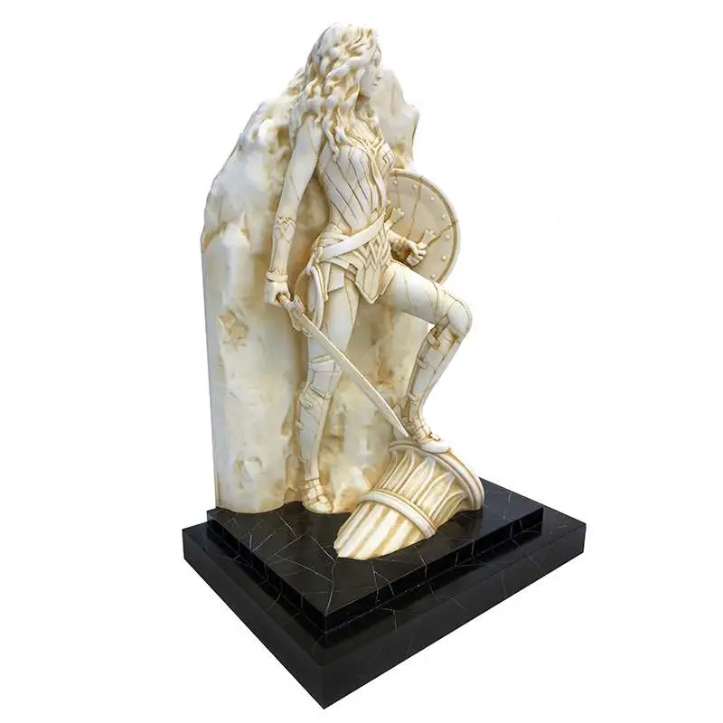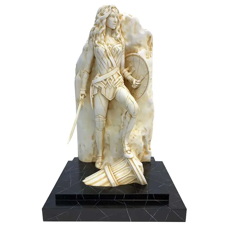 Standing 14” tall and brandishing her famous sword and shield, this is both a gorgeous work of art and a fitting tribute to an iconic superhero, captured in a Greco-Roman style as befitting a goddess.