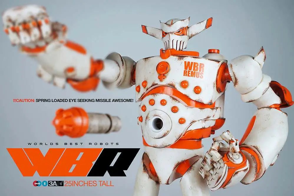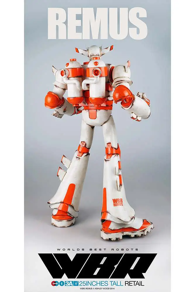 From the creative mind of Ashley Wood comes another entry in his ever-expanding universe. Chronologically set between the Popbot and World War Robot timelines, three figures have been announced for the Worlds Best Robots line — Mars, Romulus, and Remus.