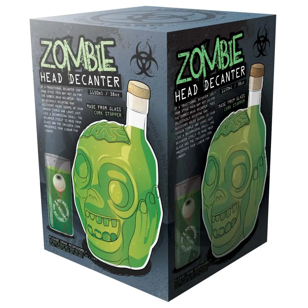 An innovative way to store and serve your favourite wine or spirit in truly gruesome fashion! The glass Zombie Head Decanter holds 1150ml and includes a cork lid to preserve the contents, making it perfect for parties, halloween or horror movie nights. Not suitable for dishwasher use. Supplied in full colour gift box